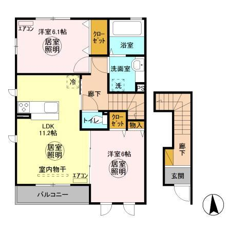 | 間取り | 2LDK | 間取り詳細 | LDK11.2 洋6 洋6.1 | 専有面積 | 61.1㎡ |